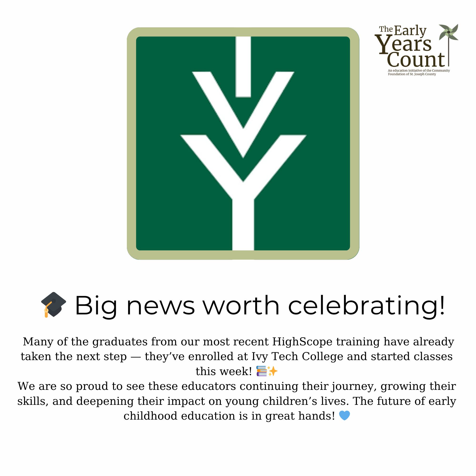 We’re thrilled to announce that we’ve been selected as a proud recipient of an Early Years Initiative grant from Early Learning Indiana! We’re stepping up our efforts to provide crucial support for infants and toddlers in HighScope classrooms in St. Joseph County. This grant empowers us to offer Infant Toddler HighScope training and curriculum support to Spanish speaking childcare providers, ensuring a brighter future for our little ones. Stay tuned for updates!